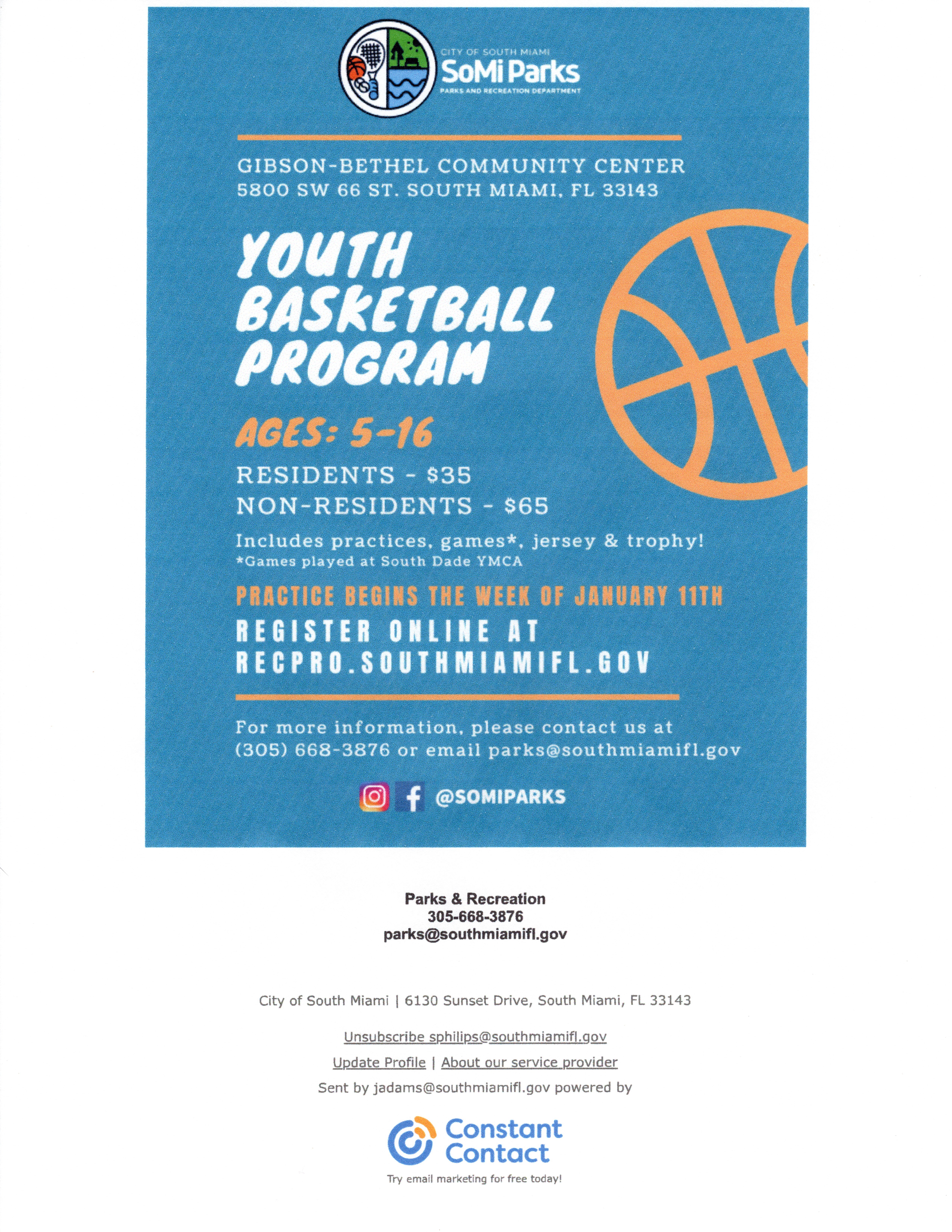 -> Youth Basketball Program, ages 5 - 16, starts January 11.